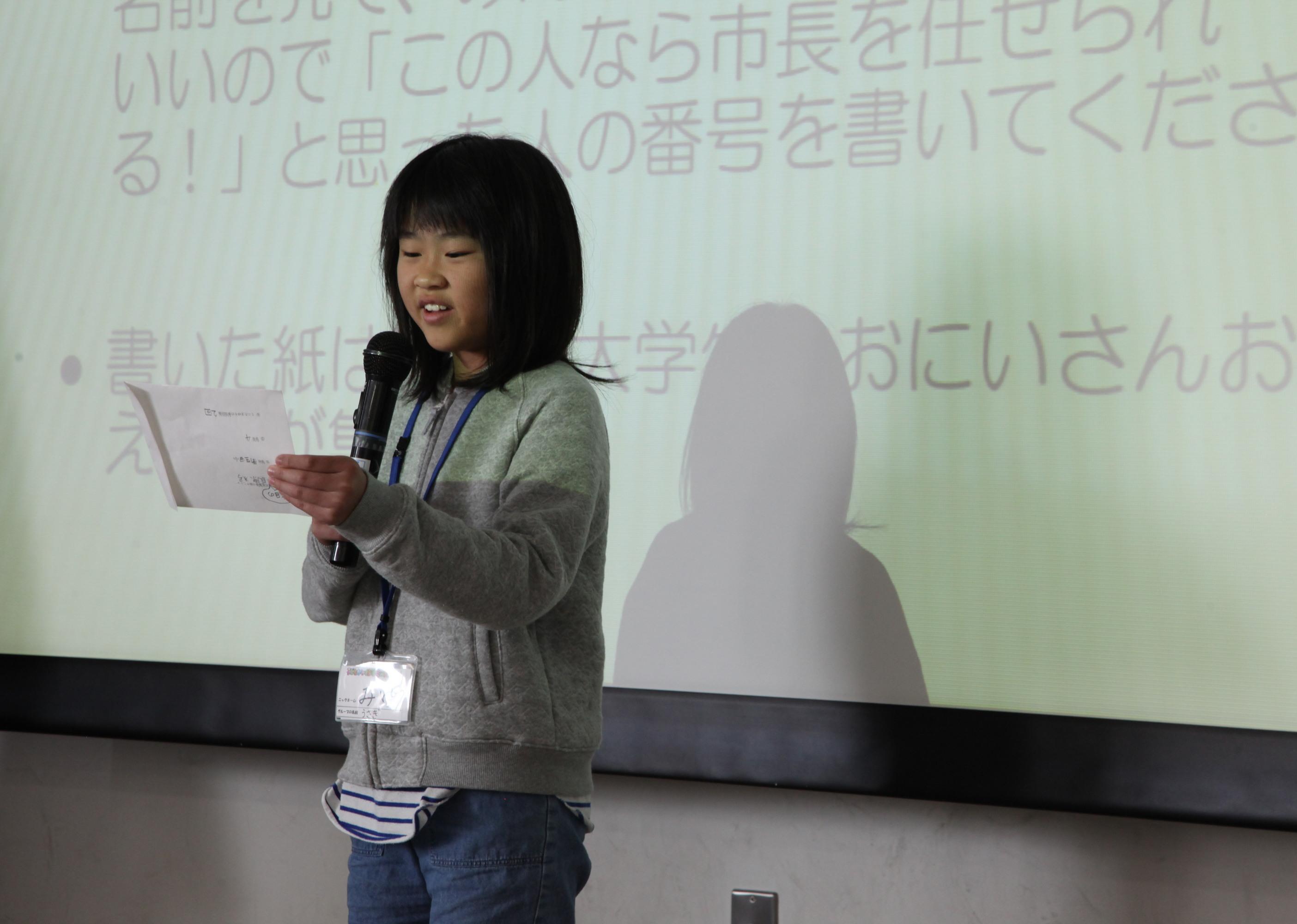 市長選挙に立候補した子どもたちは、「立候補した動機」や「ミニたまゆりをどんな町にしたいか」など自分の意見を堂々と演説します。選挙で選ばれた子ども市長は、皆やる気があり自分の意見をはっきり言える頼りがいのある子どもたちです。子ども市長は、川崎市のコミュニティー放送局であるFM川崎の生放送番組に出演したり、ミニたまゆりオープニングのテープカット、市議会・模擬裁判への参加、川崎市長との対談など、精力的にミニたまゆりのために働いてくれます。