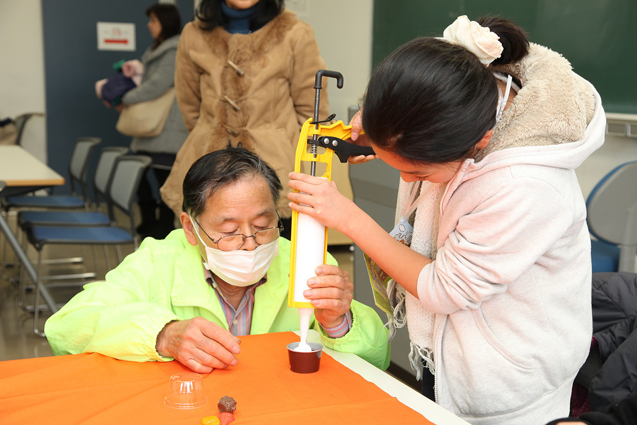食品であれば何でも写し取って、本物そっくりに再現する、つかさサンプルのスタッフが、子どもたちに食品サンプルづくりを指導してくれます。