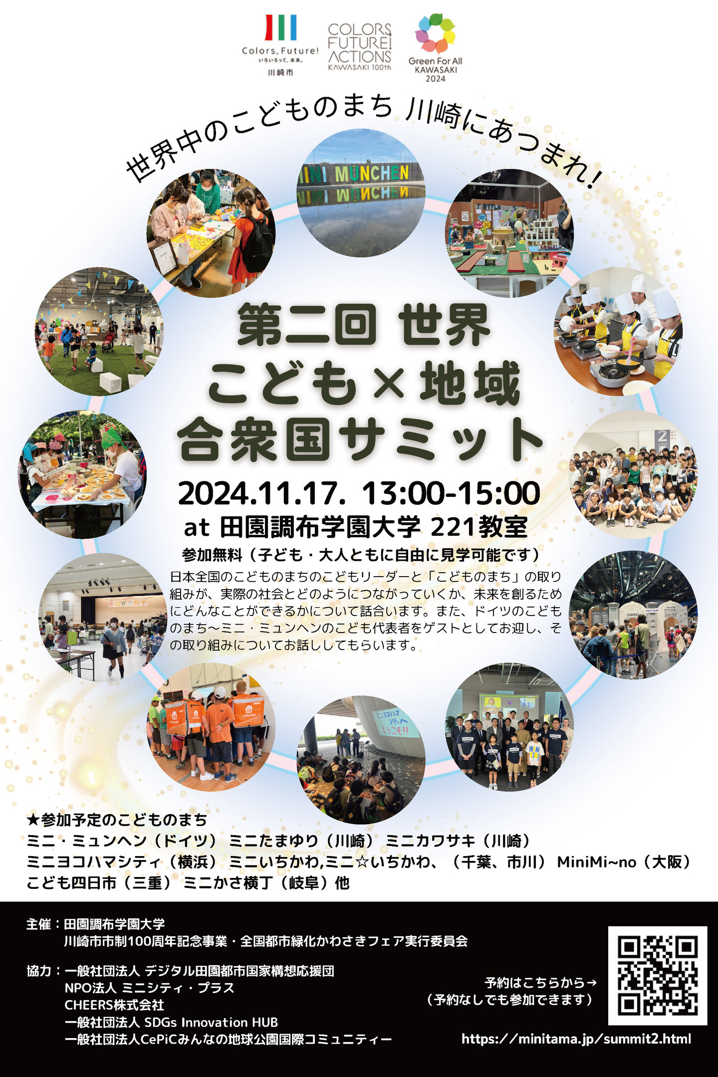 参加団体:ミニ・ミュンヘン(ドイツ)、ミニたまゆり(川崎)、ミニ・ヨコハマシティ(横浜)、MiniMi~no(大阪)など、全国の「こどものまち」の子どもの代表
